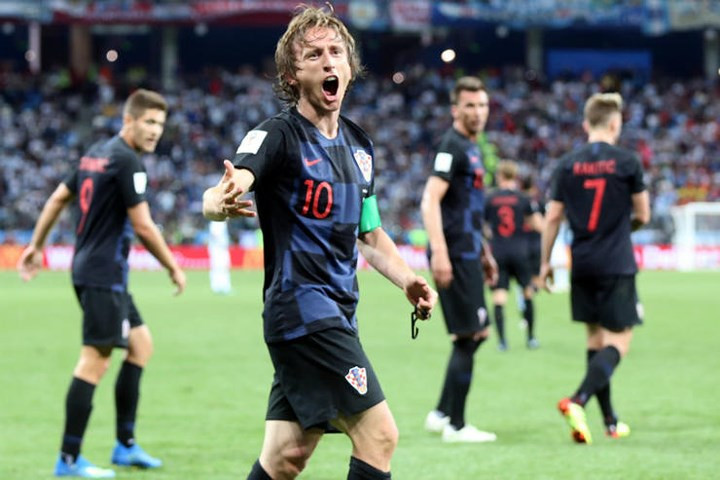 Xếp thứ 6 là siêu phẩm của Luka Modric ở trận đấu với Argentina. Tiền vệ này có bóng ở trước vòng cấm, anh đẩy một nhịp sau đó tung cú sút căng đánh bại Willy Caballero. Trận này Croatia thắng 3-0.