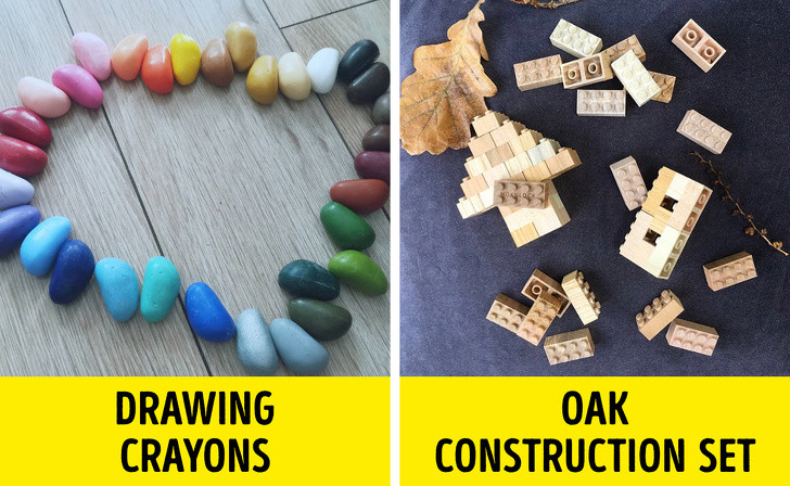 Những viên sỏi đủ màu được làm bằng sáp đậu nành, có màu sắc tự nhiên và an toàn cho trẻ em từ 2 tuổi trở lên. Những viên sỏi bút chì màu này rất bền bỉ với thời gian, khó hư hại, giúp trẻ vô tư chơi đùa mà không ngại đổ vỡ, cũng không phiền bố mẹ dọn dẹp liên tục. Hơn nữa, những viên sỏi bút chì màu còn họ giúp trẻ phát triển các kỹ năng vận động và dạy chúng nắm giữ dụng cụ bằng tay.