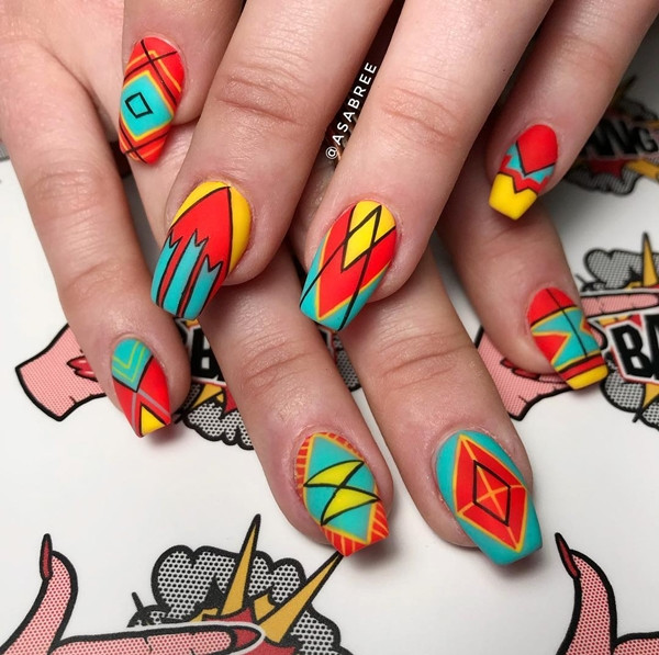Những gam màu chói kết hợp với họa tiết zig zag mang đến bộ móng tay ấn tượng và cá tính.