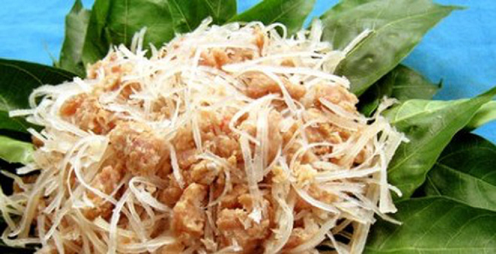 Ruốc tép được làm từ thịt lợn, nước mắm ngon, thịt tép biển, tôm nõn tươi, giã quyện vào nhau làm nên món ăn rất ngon và tinh tế.