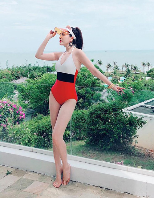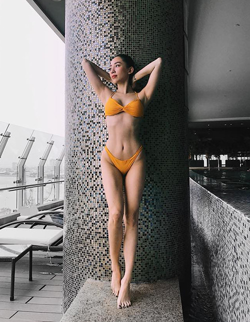 Đôi chân gọn gàng với cặp đùi mật ong săn chắc của Tóc Tiên luôn được tôn lên hết cỡ khi cô diện bikini khoét hông cao.