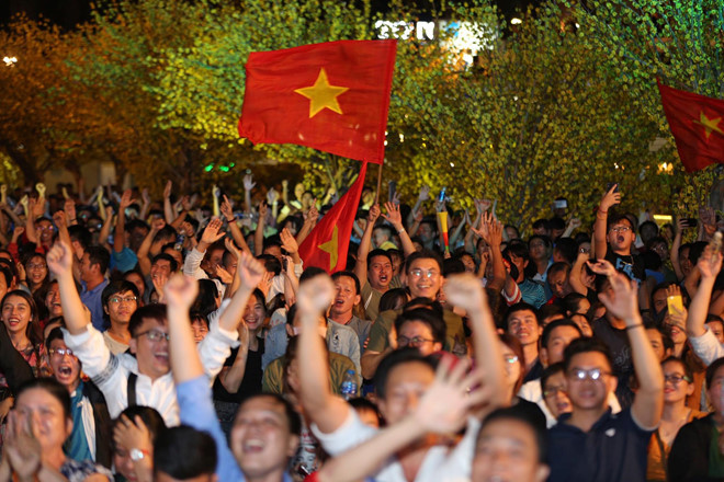 Việt Nam ghi thành công quả đầu tiên do công của Quế Ngọc Hải. Người hâm mộ hồi hộp muốn đứng tim. Cảm xúc sung sướng tăng cao theo từng cú sút luân lưu của tuyển Việt Nam.