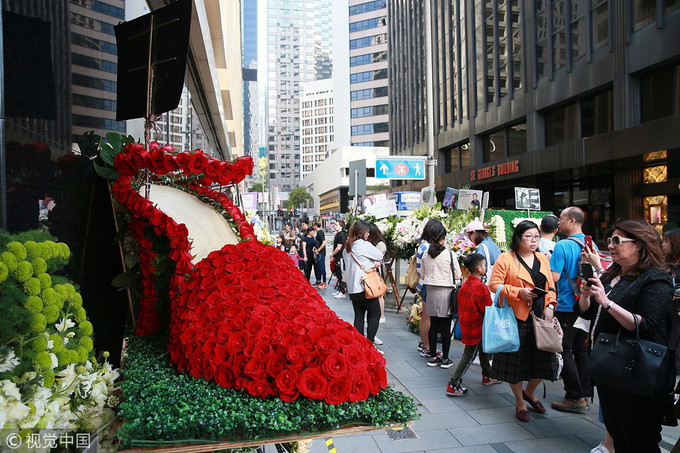 Nhiều người đổ về khách sạn Mandarin Oriental (Hồng Kông), nơi Trương Quốc Vinh tự tử, để tưởng nhớ anh. Hoa hình đôi giày đỏ - mô phỏng đôi giày cao gót Trương Quốc Vinh từng mang ở một liveshow.