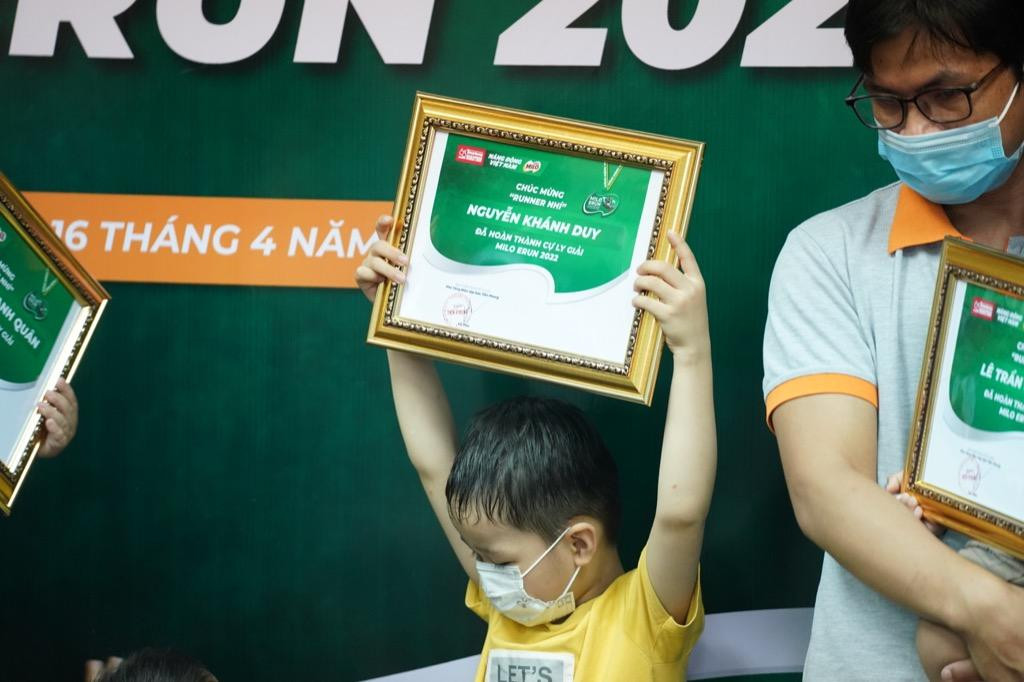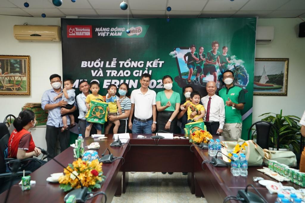 Buổi lễ trao giải chạy trực tuyến MILO Erun 2022 có sự tham gia của TS. Nguyễn Xuân Trường, Giám đốc Trung tâm Phát triển giáo dục và đào tạo phía Nam (Bộ Giáo dục và Đào tạo); đại diện Cơ quan báo Tiền Phong tại TP.HCM; đại diện Nhà tài trợ Nestlé MILO; cùng với 20 vận động viên “nhí” đạt giải và quý phụ huynh.