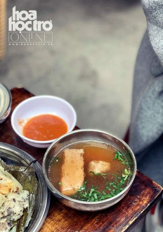 Khác với chả chấm, món bún chả chan thì những miếng chả lại nằm trong bát nước dùng xương. Thứ nước được chan vào bún này là nước ninh xương kết hợp với rau cải xanh, được nêm nếm gia vị sao cho vừa ăn. Nước này thì vị không thể đậm được như nước mắm, nhưng bù lại có vị ngọt của xương nên khi ăn cũng khá vừa miệng và hòa quyện vào bún và chả, càng thưởng thức bạn sẽ càng thấy vị thanh mát dễ chịu.