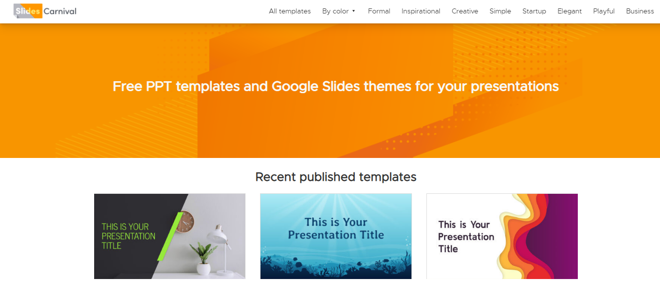 Slides Carnival là một nơi khá quen thuộc với các tín đồ thiết kế slide. Đây là một trang web tuyệt vời để tải các mẫu PowerPoint và Google Slides hoàn toàn miễn phí được chia theo chủ đề, màu sắc hoặc từ khóa liên quan giúp bạn tìm được mẫu theo ý thích nhanh chóng.