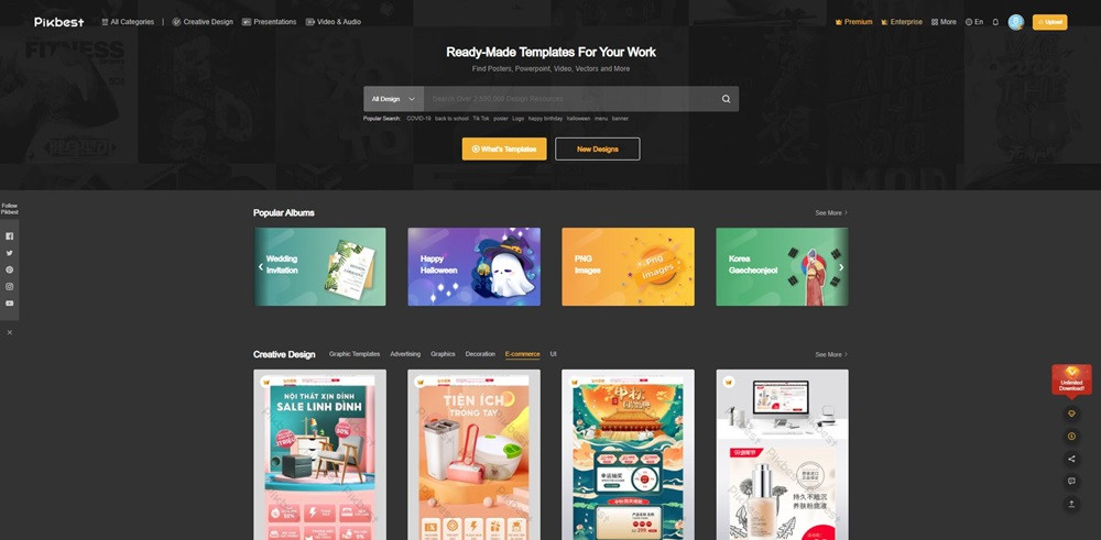 Đến với Pikbest, bạn sẽ được khám phá hàng nghìn mẫu thiết kế Powerpoint miễn phí, đa dạng và sáng tạo. Chưa hết, đây còn là thư viện tài nguyên không chỉ cung cấp thiết kế PPT mà còn chia sẻ những hình ảnh sử dụng cho các ấn phẩm mà người dùng mong muốn. Mỗi ngày bạn sẽ có hai lượt tải miễn phí, bạn cũng có thể lựa chọn nâng cấp để tải thêm nhiều template mỗi ngày nhen!