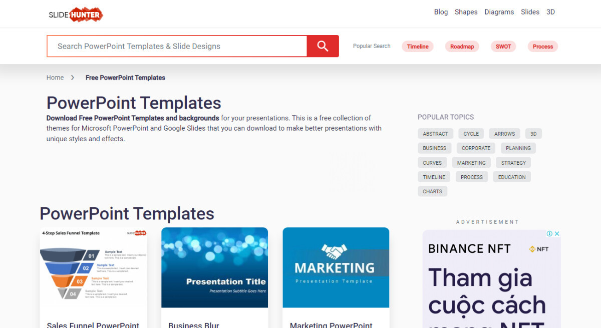 Chắc chắn Slide Hunter sẽ gây ấn tượng với bạn qua giao diện hiện đại và thân thiện với người dùng. Trang web được chia thành nhiều chủ đề khác nhau như: Giáo dục, biểu đồ, 3D, chu kỳ,... từ nghiệp dư đến chuyên nghiệp để bạn có thể tha hồ chọn lựa nữa đó!
