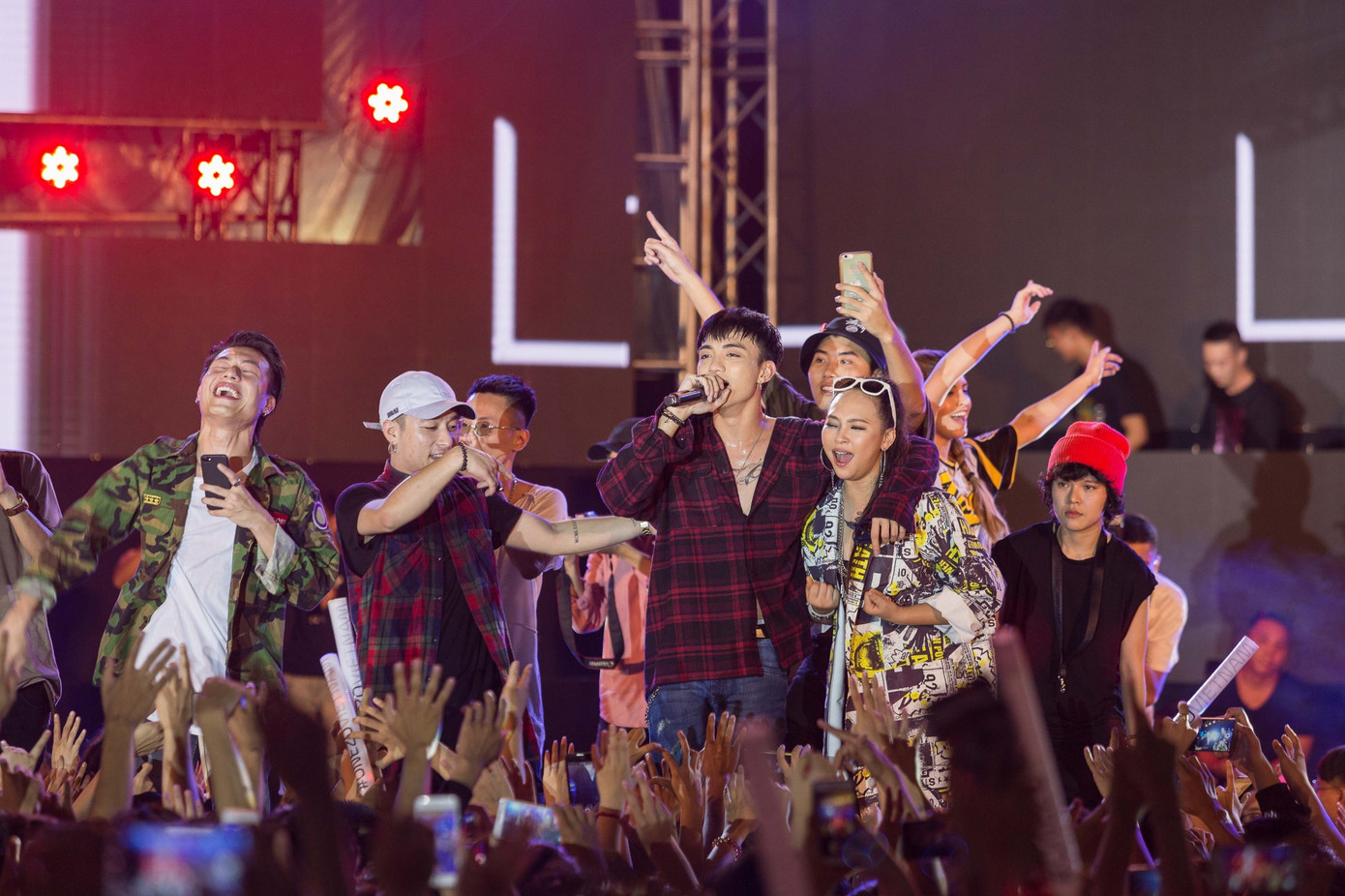 Hiếm khi thấy một sự kiện âm nhạc nào mà dàn sao đình đám và fan lại hòa làm một như thế. Gần 20 nghệ sĩ đã cống hiến, cháy hết mình với âm nhạc qua những bản mix chất lừ, bắt tai khiến người nghe vô cùng phấn khích. Không chỉ hát, nhảy, các nghệ sĩ còn dám lăn xả... nằm cả ra sàn để pose ảnh cùng fan phía dưới.
