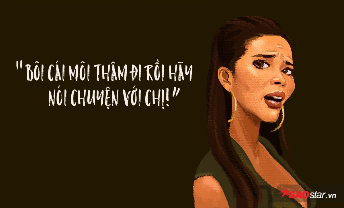 5. Tập 3 The Face Việt Nam được hâm nóng bởi câu nói cực đanh đá của Minh Tú với Lan Khuê, khiến cư dân mạng được dịp chế ngay một rổ ảnh với nhân vật chính không ai khác ngoài ba HLV: Lan Khuê, Minh Tú, Hoàng Thùy. Giới trẻ thường xuyên nhắc đi nhắc lại câu nói này với bạn bè theo nghĩa hoàn toàn tích cực và vui vẻ.
