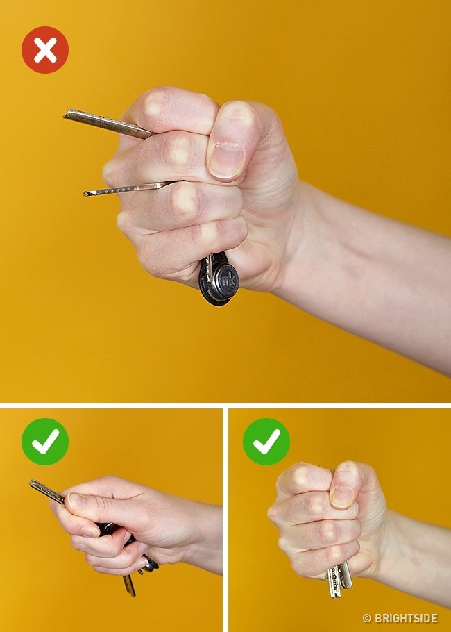 Không nên: Đan chìa khoá vào giữa các ngón tay vì sẽ cực mất thời gian và có thể gây thương tích cho bàn tay của bạn.