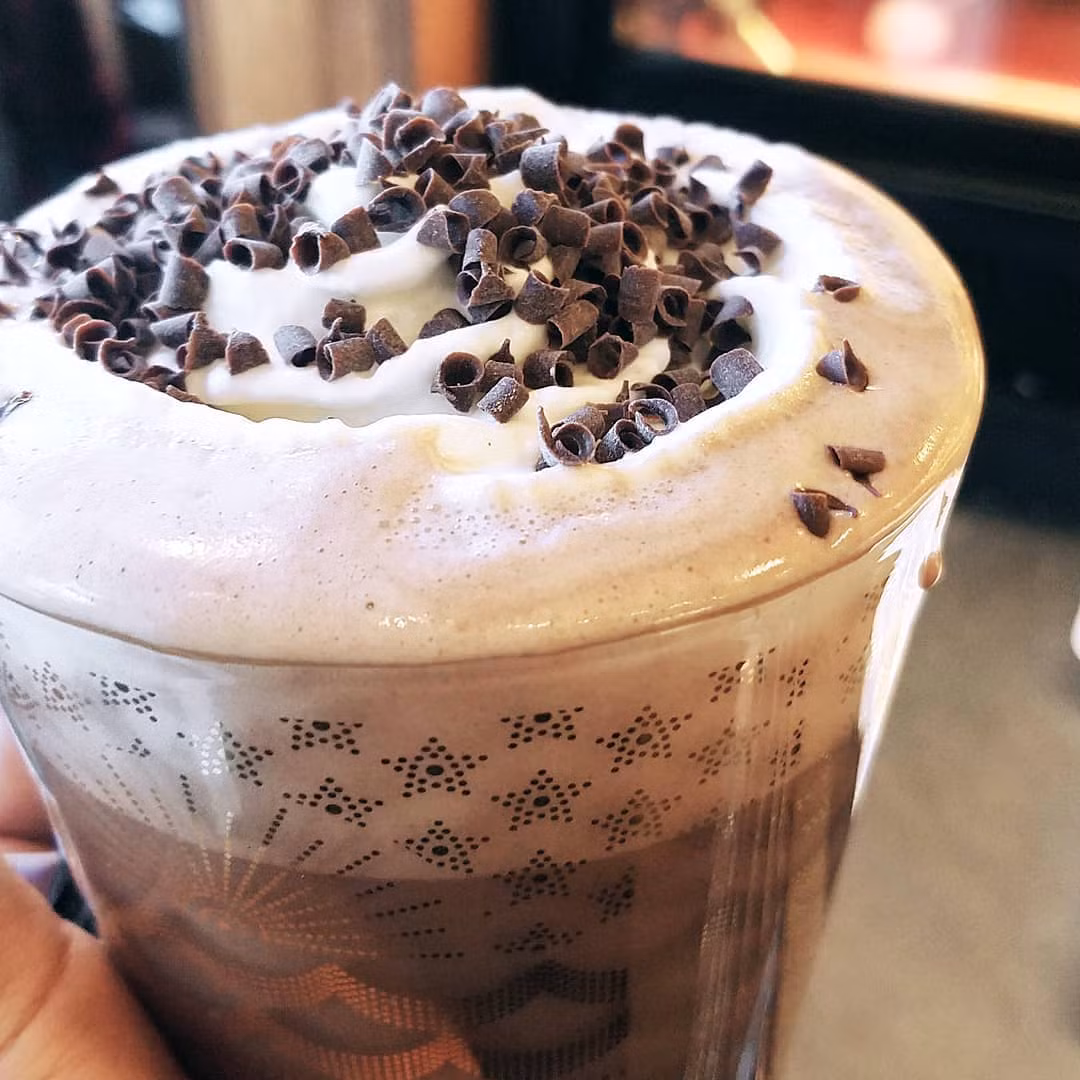 Cacao nóng cổ điển của Starbucks được làm bằng sữa hạnh nhân, sốt mocha, si-rô kẹo quả hạch và phủ bởi whipped cream và lớp caramel brulée cứng giòn.