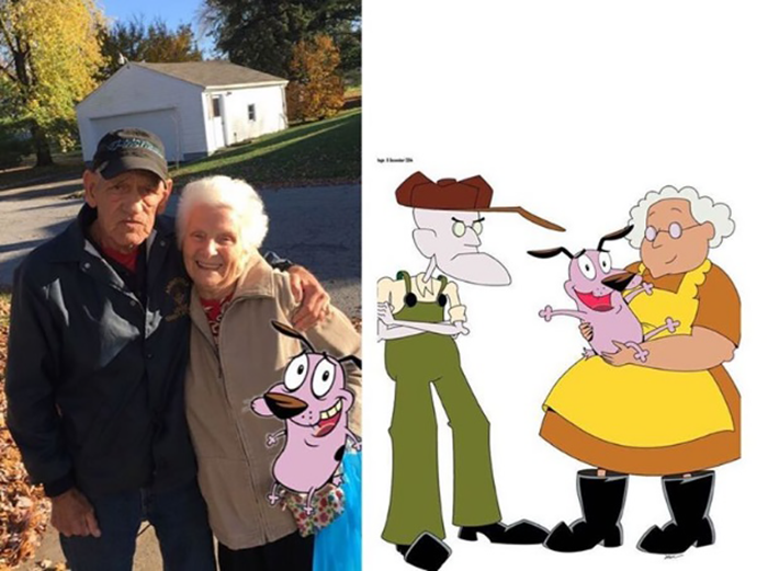 Không chỉ vậy, bà còn bị gán ghép với ông hàng xóm là cặp vợ chồng già trong phim hoạt hình Courage - The Cowardly Dog.