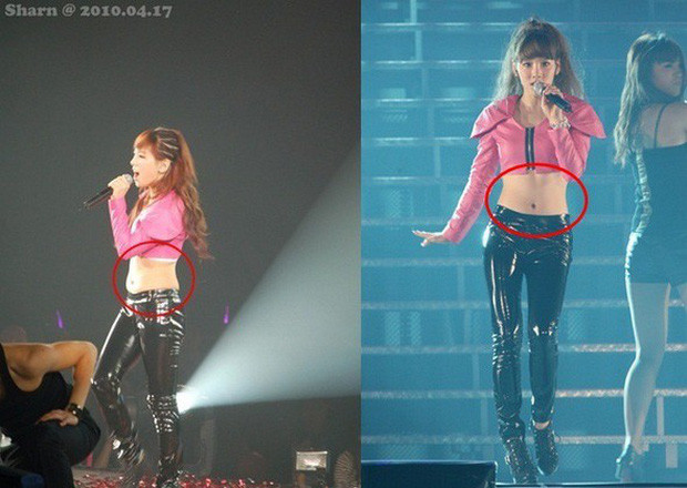 Còn nhớ năm 2010, Taeyeon từng bị nhiều fan chê cười vì vòng hai mũm mĩm. Khi mặc trang phục bó sát, nhìn Taeyeon càng thêm tròn trịa và công ty SM Ent đã phải chỉnh sửa ảnh để Taeyeon nhìn thon nhỏ hơn.