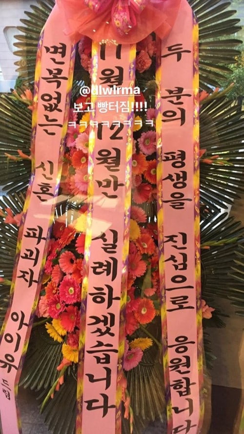 Và đây không phải lần đầu tiên IU thể hiện tính hài hước qua các lời nhắn đính kèm lẵng hoa. Khi chúc mừng concert của đàn anh K.Will, IU đã bộc bạch “Em thích anh lắm oppa à, em có thể làm gì được nào?”.