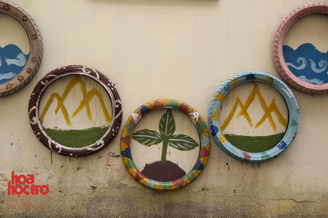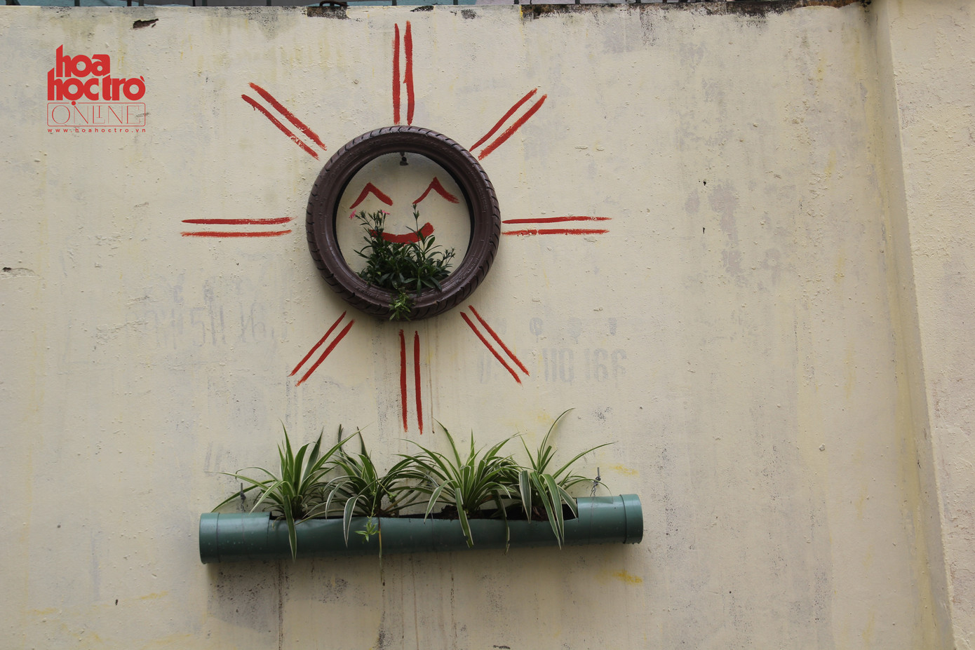 Chưa dừng lại ở đó, việc tái chế các đồ bỏ đi để trồng thêm cây xanh càng làm bức tường thêm lạ mắt.