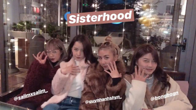 Được nhắc đến như những "yêu nữ xài hàng hiệu" của showbiz Việt, hội bạn thân của Hoa hậu Kỳ Duyên bao gồm những cái tên đình đám như Diệp Lâm Anh, Hà Lade, Lam Cúc. Thường xuyên xuất hiện tại các buổi tiệc sang trọng, hội bạn thân của Kỳ Duyên luôn biết cách khiến người khác trầm trồ bởi gu ăn mặc thời thượng của mình. Ngoài ra những người đẹp này cũng thường xuyên dành thời gian đi du lịch cùng nhau. Hội "yêu nữ xài hàng hiệu" gần đây đã "kết nạp" thêm thành viên mới đó chính là siêu mẫu Minh Triệu. Mặc cho những tin đồn tình cảm trong thời gian qua, Minh Triệu thoải mái nắm tay Kỳ Duyên khẳng định "tình chị em". Nếu hội bạn thân của Kỳ Duyên chọn các món đồ xa xỉ để khiến công chúng choáng ngợp thì hội bạn của ngọc nữ Tăng Thanh Hà lại khiến người khác phải ngưỡng mộ bởi tình cảm chân thành mà họ dành cho nhau. Quen biết và trở nên thân thiết với nhau từ năm 2007, tới nay hội bạn thân 4 người gồm Tăng Thanh Hà, Thân Thuý Hà, Bùi Việt Hà và Thùy Trang (vợ ca sĩ Phạm Anh Khoa) đã có 12 năm cùng nhau vượt qua bao thăng trầm trong cuộc sống. 4 cô bạn thân luôn khiến người hâm mộ thích thú với những khoảnh khắc đời thường rất đỗi bình dị. Gần đây nhất, trong dịp sang Mỹ thăm người bạn Thân Thúy Hà vừa sinh con, Tăng Thanh Hà cũng đã tranh thủ khoe ngay khoảnh khắc vui vẻ này trên trang cá nhân. Đều từng là những hotgirl đình đám tại Hà Nội và cùng nhau vào Sài Gòn lập nghiệp, Quỳnh Anh Shyn và Chi Pu là một trong những cặp bạn thân trong showbiz khiến nhiều người phải ngưỡng mộ. Không chỉ thường xuyên xuất hiện cùng nhau tại các sự kiện, nhiều fan còn tinh ý nhận ra cả hai không ít lần mặc đồ theo style giống nhau. Ngoài Quỳnh Anh Shyn, Salim chính là mảnh ghép hoàn hảo cho bộ ba chất phát ngất. Những khoảnh khắc vui vẻ bên nhau như bao hội con gái khác. Nếu như các hội bạn thân khác đều hướng đến những hình ảnh đẹp, sang chảnh, thì hội bạn của các 9X đời cuối như Kaity Nguyễn, Trang Hý, Kiều Trinh, Trịnh Thảo lại có phong cách trẻ tung, hài hước mỗi lần xuất hiện chung. Ngoài những chuyến du lịch, dã ngoại cùng nhau, hội bạn thân "thừa muối" này cũng thường xuyên có nhiều dự án chung như chụp ảnh thời trang, đóng phim.Đẹp long lanh khi lên hình là thế...Tuy nhiên khi về lại đời thường lại luôn "lầy lội", vui vẻ đúng với tính cách của mình.