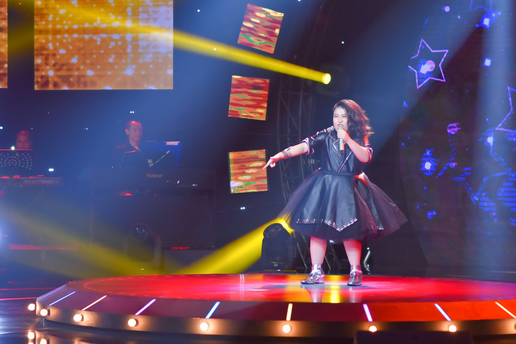 Khi Khánh Hà đến phim trường để ghi hình cho vòng Tuyển chọn, em được chương trình chọn trang phục lạ mắt để phù hợp với phong cách rock mà mình thể hiện. Chiếc đầm xòe với chất liệu da đính hạt phát sáng thể hiện được sự nữ tính lẫn cá tính mạnh mẽ của em.