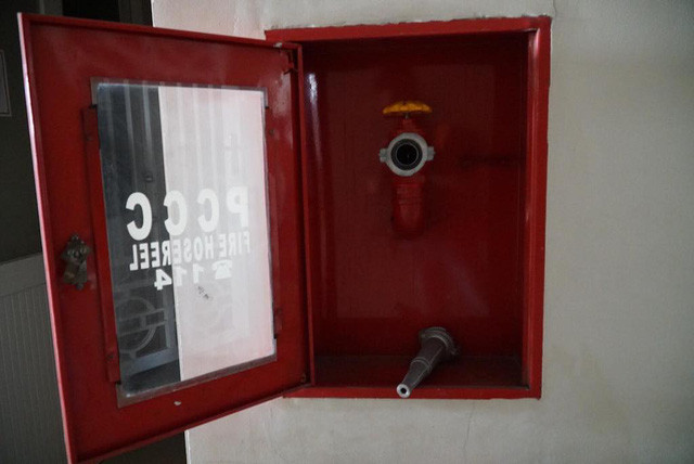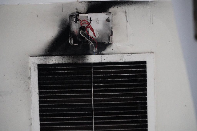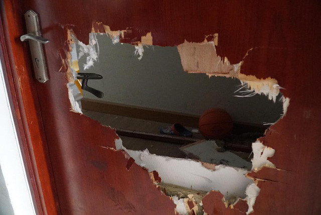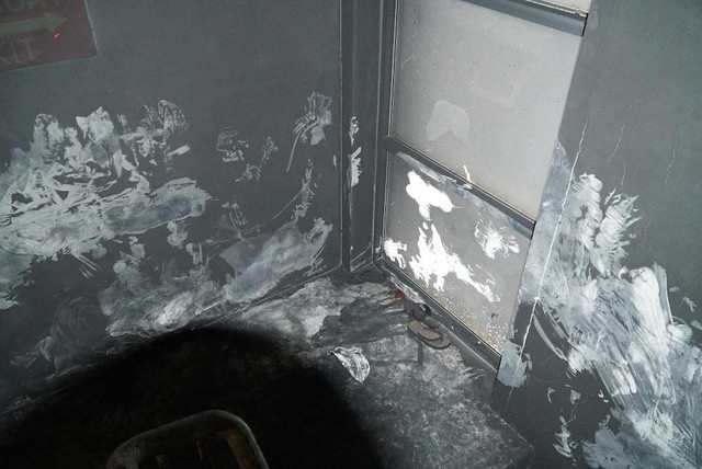 Dấu vết cửa căn hộ bị phá để cứu người vẫn còn lại.