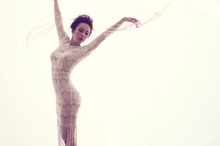 Trở thành một trong những ngôi sao trẻ được chú ý của V-Biz, bên cạnh nhan sắc thì phong cách thời trang là một trong những yếu tố tạo nên thành công của Angela Phương Trinh. Dù không lợi thế về chiều cao nhưng chính thần sắc nổi bật giúp nữ diễn viên 21 tuổi luôn trở thành lựa chọn của các nhà thiết kế. Cô cũng chính là diễn viên có khả năng lấn sân sâu nhất vào lĩnh vực thời trang. Trong loạt ảnh mới, nữ diễn viên gây thương nhớ với loạt trang phục ren, tua rua màu trắng tinh khôi của nhà thiết kế Đỗ Mạnh Cường. Tất cả đều thể hiện tinh thần tối giản, sang trọng, nữ tính và hợp xu hướng. Những mảng ren được nhà thiết kế họ Đỗ bố trí bất đối xứng nhưng vẫn tạo nên một tổng thể có đường nét, hình khối bắt mắt.