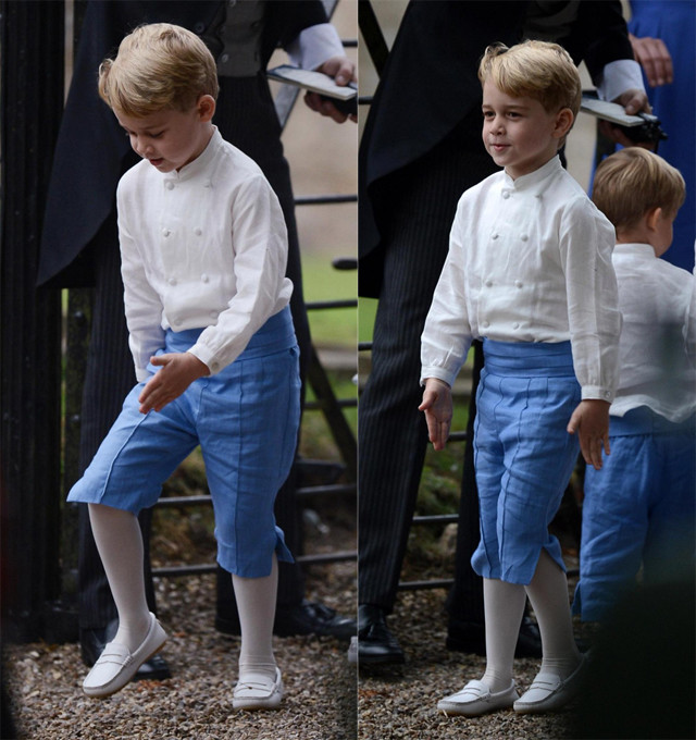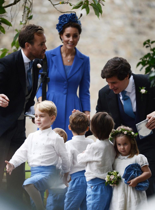 George đã chạy vòng quanh cùng dàn phù rể nhí với tâm thế giống như thủ lĩnh và thỉnh thoảng lại cười khúc khích khi bắt chước động tác của kỵ binh.