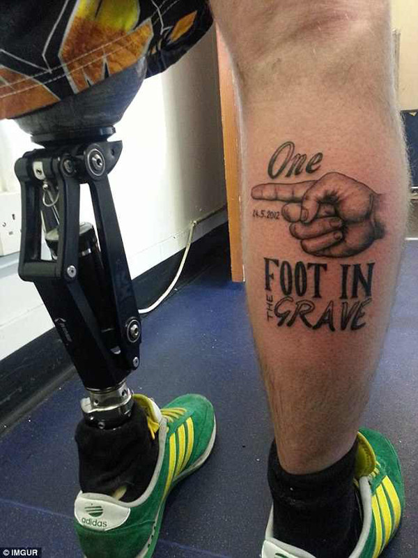 Trong chương trình, Gareth tiết lộ rằng anh đã thực hiện hình xăm “Một chân nằm trong mộ” trên chân phải sau khi bị mất đi bên chân trái.