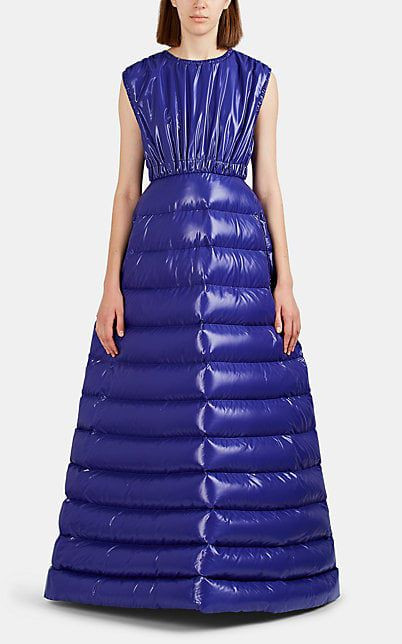 Mới đây nhất, một hãng thời trang khá nổi tiếng của Italia là Moncler đã giới thiệu mẫu váy phao mới tinh của họ. Bạn không đọc nhầm đâu. Là VÁY PHAO đó. Chiếc váy trông y hệt cái bánh gato ngày xưa chúng ta hay được bố mẹ mua cho mỗi dịp sinh nhật này có hai phiên bản màu là hồng và xanh cô-ban (thật rực rỡ). Giá cho mỗi em váy này là 2115 bảng Anh (khoảng 60 triệu đồng).