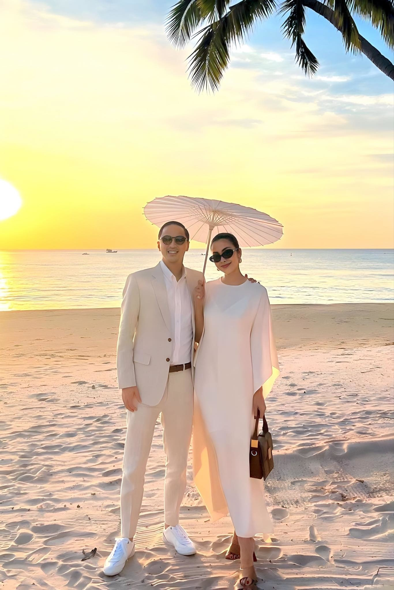 Như mới đây, hai vợ chồng Hà Tăng đã cùng dự lễ cưới bên bờ biển của một người bạn thân. Nữ diễn viên chọn bộ váy lụa trắng đầy kín đáo, có thiết kế trang nhã nhưng vô cùng sang trọng. Khoảnh khắc Hà Tăng sánh đôi bên chồng khiến netizen chỉ biết tấm tắc khen bức ảnh toát ra mùi sang chảnh.