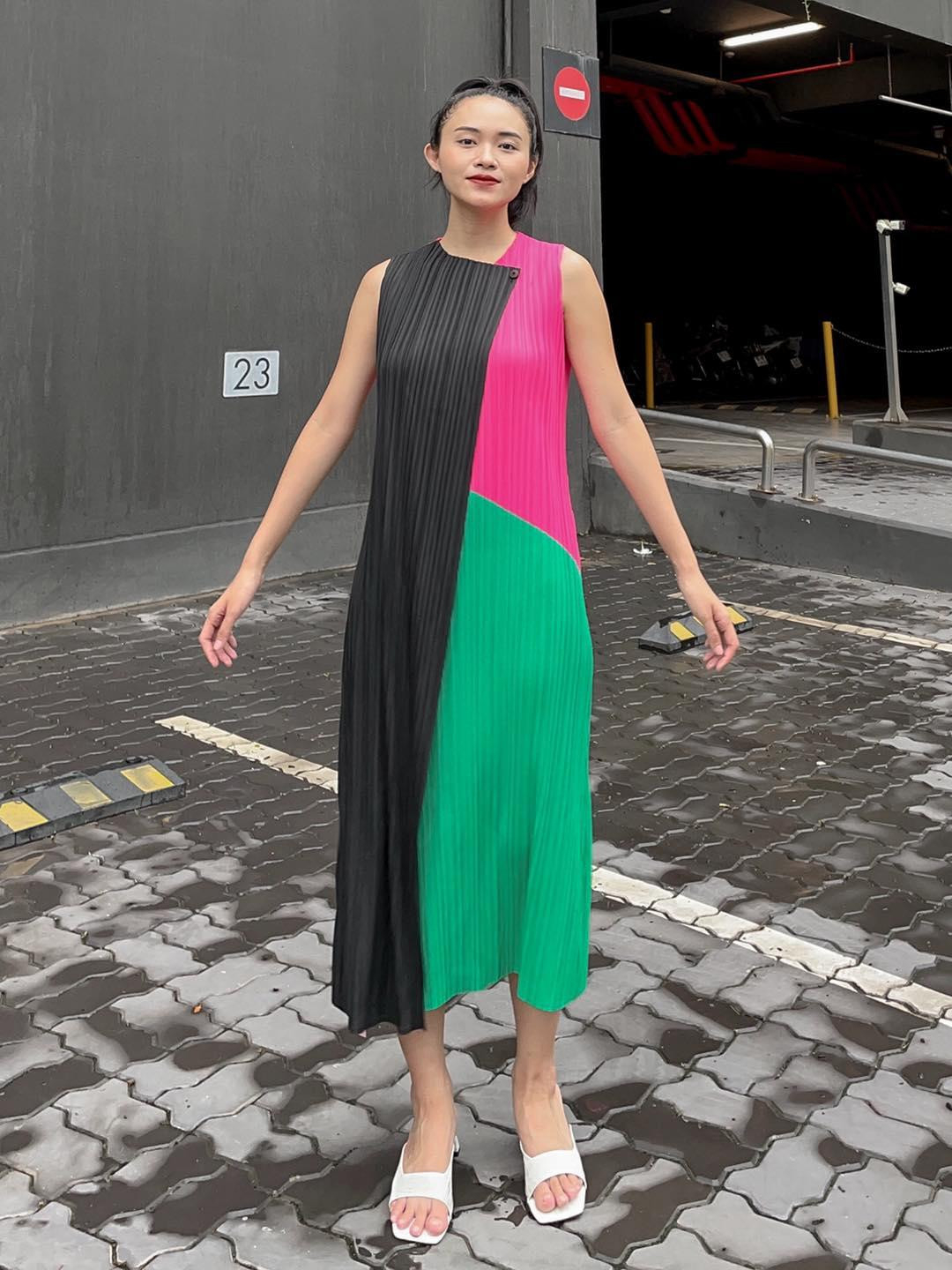Đồ đơn sắc khiến cơ thể không bị chia ra thành nhiều phần nên khiến mắt người nhìn sẽ nhìn tổng thể từ trên xuống dưới, hết chiều dài thân người, vì vậy mà khiến bạn trông cao hơn.
