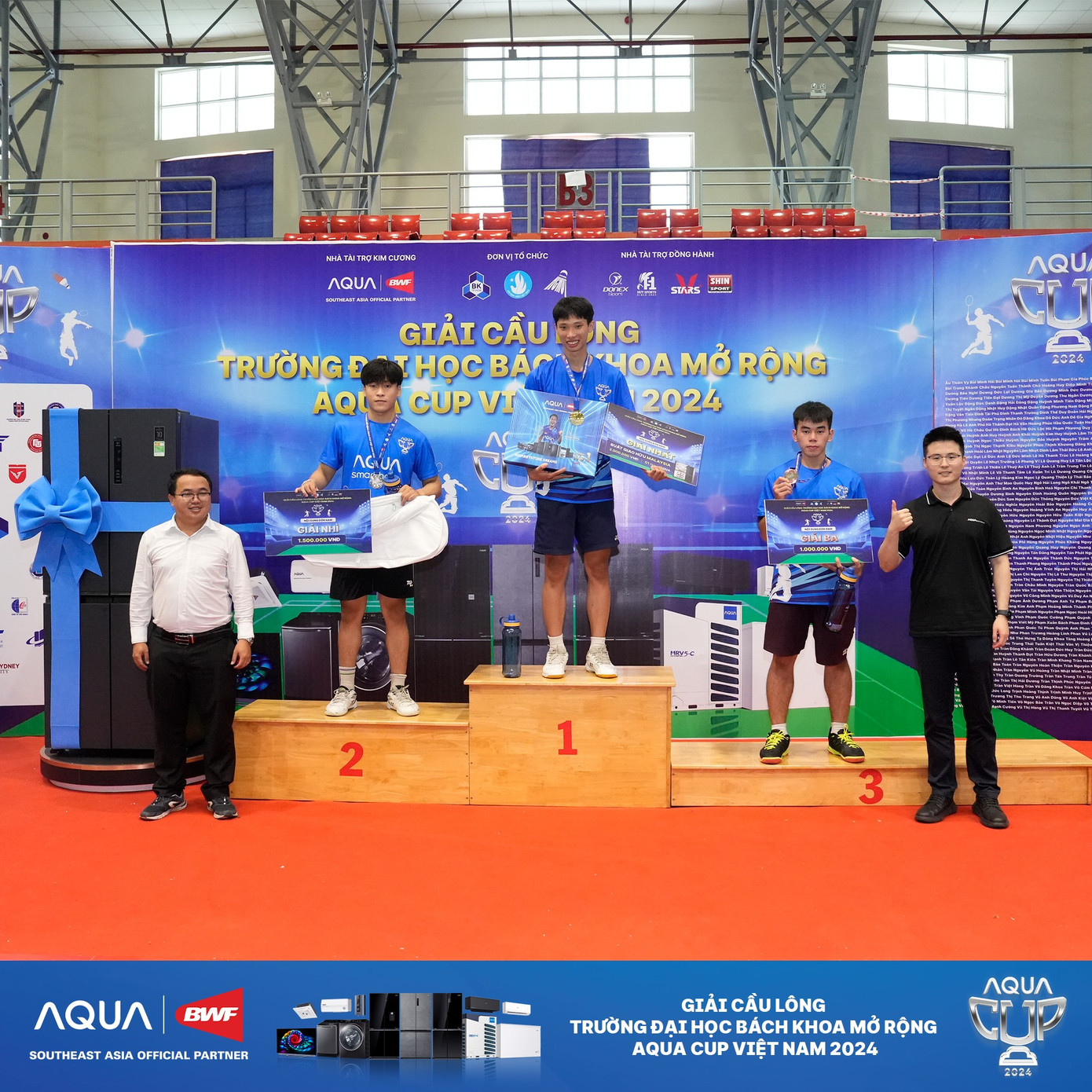 Phát biểu tại lễ bế mạc, ông Fan Guofeng - Tổng Giám Đốc Công ty TNHH Điện Máy AQUA Việt Nam chia sẻ: “Chúng tôi rất vui mừng khi thấy giải đấu năm nay được tổ chức thành công tốt đẹp, không chỉ tạo được một sân chơi thể thao lành mạnh mà còn đem lại nhiều ấn tượng tốt đẹp cho tất cả vận động viên lẫn người hâm mộ. Bên cạnh việc cung cấp các trải nghiệm công nghệ tuyệt vời, AQUA Việt Nam luôn mong muốn đồng hành cùng thế hệ trẻ Việt Nam, tạo ra những sân chơi bổ ích để các bạn phát triển toàn diện.”.
