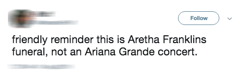 "Nhắc nhở thân tình: Đây là tang lễ của Aretha Franklin, không phải concert của Ariana Grande nha."