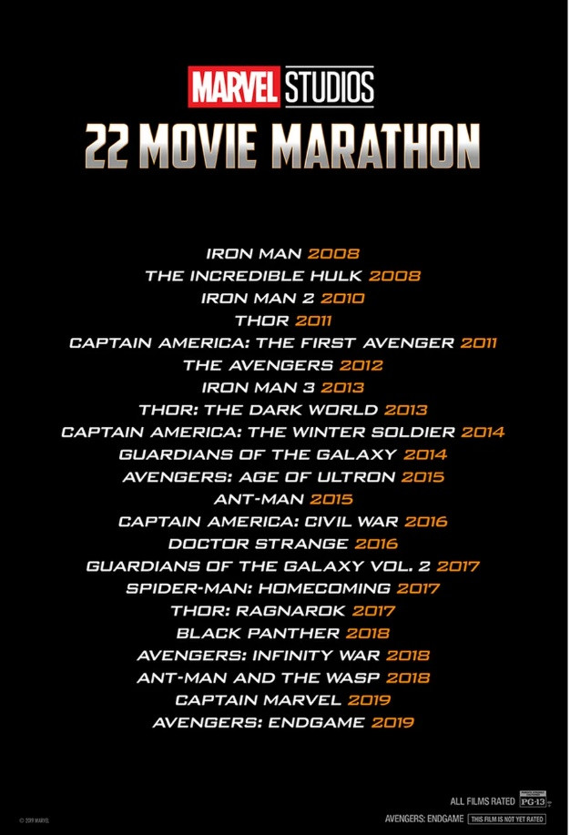 Các rạp chiếu phim Mỹ đã nhìn thấy nguồn lợi khổng lồ từ vũ trụ điện ảnh Marvel. Thậm chí, cụm rạp AMC đã quyết định chiếu liền toàn bộ 22 bộ phim từ trước đến nay của MCU. Chỉ cần trả 90 đô la (hơn 2 triệu VNĐ), khán giả sẽ được trải nghiệm 57 tiếng đồng hồ xem phim liên tục.