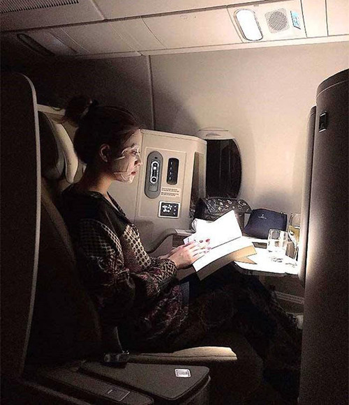 Vì phải di chuyển liên tục để chạy show, khoảng thời gian ở trên máy bay trở nên rất quý giá với sao Viêt. Nhiều người đẹp tận dụng lúc rảnh rỗi này để đắp mặt nạ làm đẹp, bổ sung độ ẩm, cung cấp dưỡng chất, thuận tiện cho việc trang điểm nếu phải đi sự kiện ngay khi đáp xuống sân bay. Hoàng Thùy Linh từng gây thích thú khi khoe ảnh vừa đắp mặt nạ trên máy bay, vừa đọc sách.