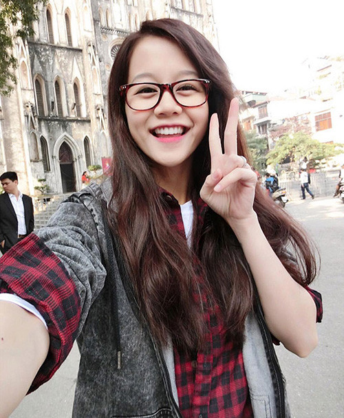 Mắt kính mang đến cho An Nguy diện mạo năng động, chẳng khác gì các nữ sinh.