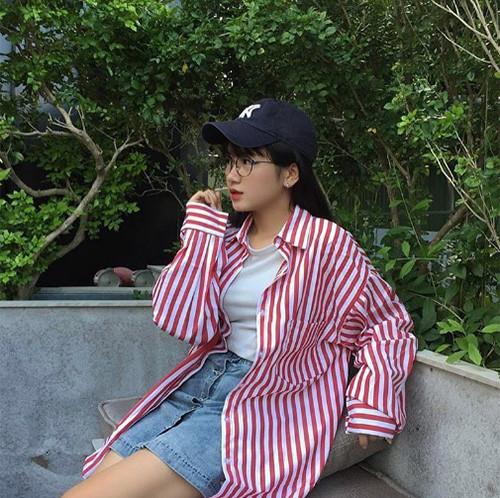 Sơ mi rộng lùng bùng như "mượn của bố" không phải là kiểu mốt mới lạ của teen Việt. Nó thường được ứng dụng để diện theo kiểu "giấu quần" hoặc khoác hờ bên ngoài tăng độ "chất".