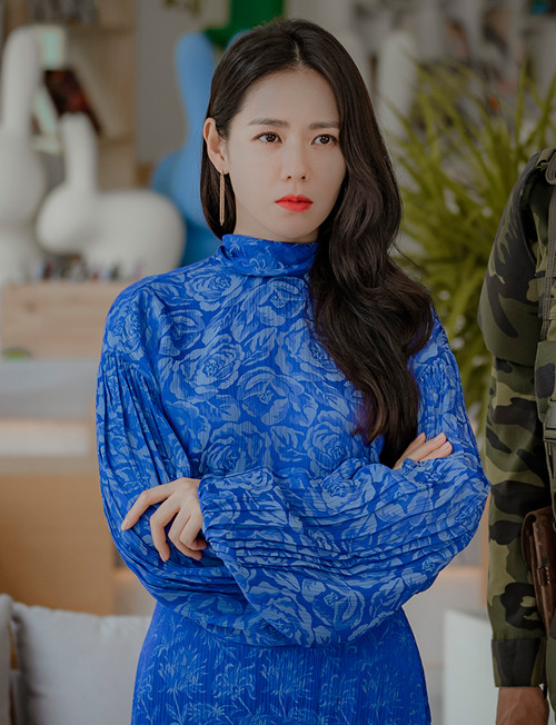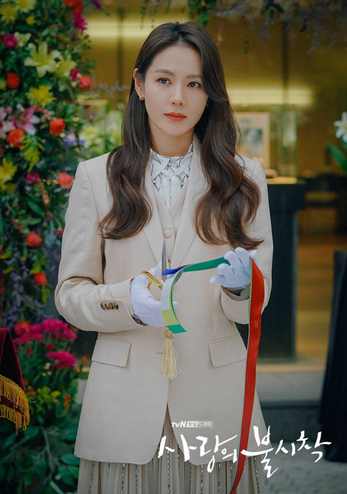 Kiểu tóc này thể hiện rõ nét vẻ đẹp cổ điển của Son Ye Jin, đồng thời ăn rơ tuyệt đối với những bộ cánh vintage mà cô diện.