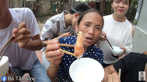 "Cuộc đời bà gần 60 đồng bánh chưng rồi nhưng chưa bao giờ bà nấu nồi lẩu Thái to như thế này" - bà Tân đã cảm thán bằng một câu nói hết sức quen thuộc trong các clip của mình. Thật vậy, nồi lẩu to y như nồi bánh chưng, được bà bỏ đủ các gia vị như mực, tôm, thịt bò, xúc xích….