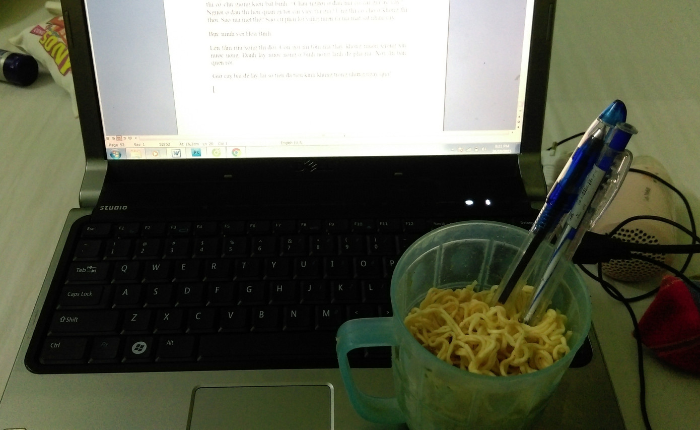 Tôi đã đi qua không biết bao nhiêu cái nhà trọ ở miền Tây, đêm nào cũng giật mình đập muỗi chan chát, xuýt xoa khi lạc vào cái chợ toàn mắm là mắm ở Châu Đốc - An Giang, cắm mặt ăn một nồi chao vịt ngon nhất trần đời ở Bình Phước… Ở Sài Gòn, tôi không ăn được cơm hàng, nhưng lại rất thích các món của người Hoa ở đây: Súp cua, trứng bắc thảo, sâm bổ lượng, bột chiên… Giữa thành phố có một cái hồ, mang tên Hồ Con Rùa, mà lần đầu tới tôi cứ ngó quanh ngó quẩn hỏi nháo nhác “Đâu, hồ đâu mày?”. Tới khi biết cái “hồ” chỉ nhỏ bằng… hòn non bộ thì tôi phá lên cười, khiến bạn tôi tự ái.