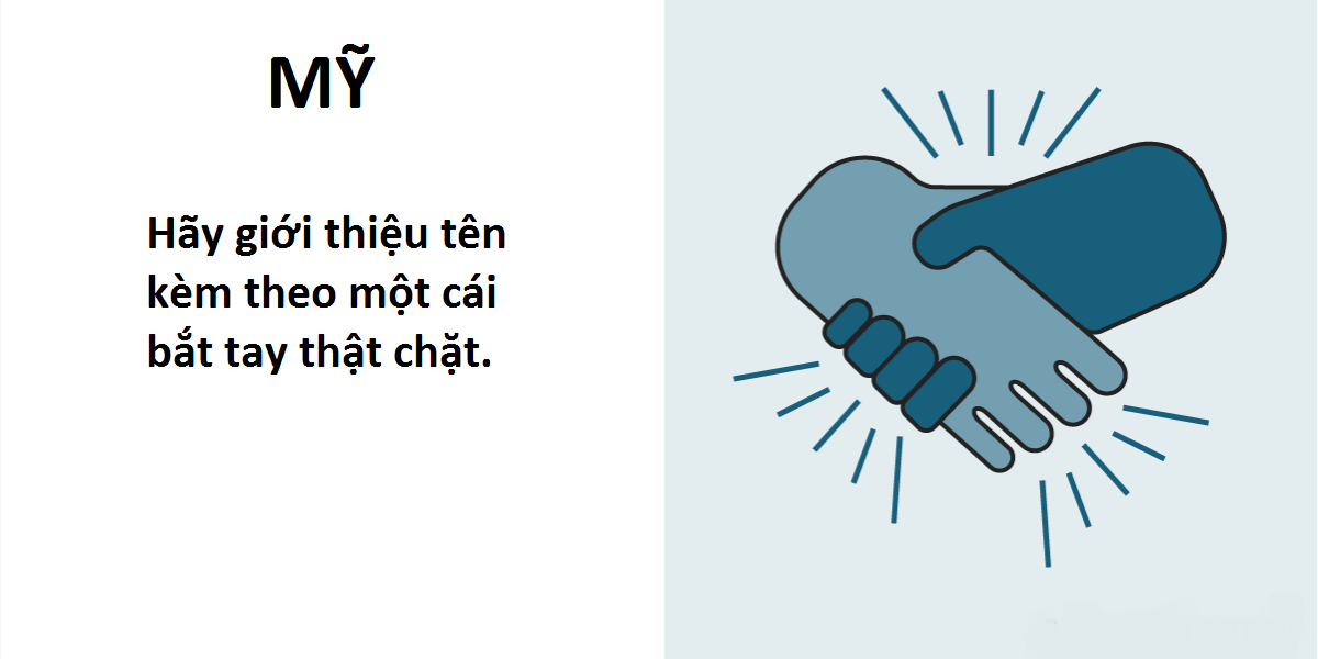 Mỗi quốc gia đều có nguyên tắc xã giao riêng. Cách nói chuyện, ăn mặc, đi đứng và ngay cả cái bắt tay cũng rất khác nhau. Với bạn, bắt tay là thể hiện sự lịch thiệp, cởi mở, nên bắt ở đâu cũng vậy, có bắt là tốt rồi. Nhưng với đối phương, một cái bắt tay cũng nói lên kha khá điều về bạn, và thậm chí còn có thể gây ra những hiểu lầm khó đỡ nếu cứ bắt đại, bắt bừa. Vì vậy, hãy dắt túi ngay cách bắt tay "đúng chuẩn" của quốc gia mà bạn sắp đặt chân đến để gây ấn tượng với những người bạn bản xứ nào!