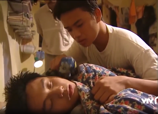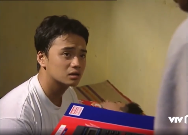 Khuôn mặt buồn rầu của Nghĩa khi giải thích với bác chủ nhà rằng tiền còn để mua thuốc và đồ ăn cho bạn.
