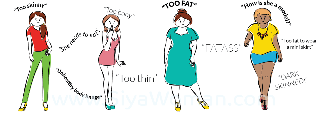 Tổ chức Ditch the Label sau nhiều năm nghiên cứu đã công bố rằng: Cứ hai người lại có một người không hài lòng với cơ thể mình, nghĩa là một nửa nhân loại luôn bất mãn về cơ thể. Nhưng bạn nên nhớ rằng chuẩn mực về cái đẹp luôn thay đổi. Bằng chứng là da trắng môi trái tim đã là “mốt” ngày hôm qua, hôm nay da nâu mắt khói môi tều mới là thời thượng; chân mày ngang Hàn Quốc đã bị soán ngôi bởi kiểu chân mày rậm xếch cao Âu Mỹ. Hơn nữa, đến cả những hoa hậu từ khắp các cuộc thi nhan sắc trên thế giới còn bị chỉ trích nhan sắc đều đặn mỗi mùa cơ mà.
