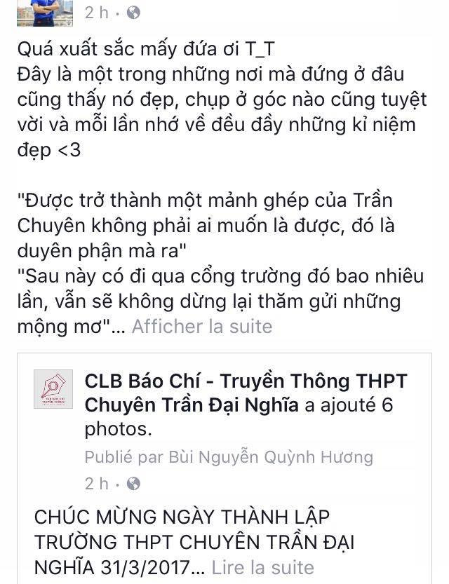 Bạn Quỳnh Hương, đang học lớp 11CA3, một thành viên của CLB, bộc bạch: “Tụi mình lên kế hoạch, nội dung trước đó một tuần lận nhưng tại trong tuần bận quá, tối hôm qua còn ngủ quên nên nên chiều 31 (là chiều ngày sinh nhật) mới bắt đầu thiết kế. Lúc nghĩ quote (những câu ghi chú trên hình) còn “củ chuối” nữa, như là "Thầy cô có công dựng trường, học sinh chúng ta phải có công giữ trường !".