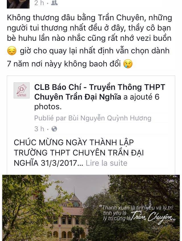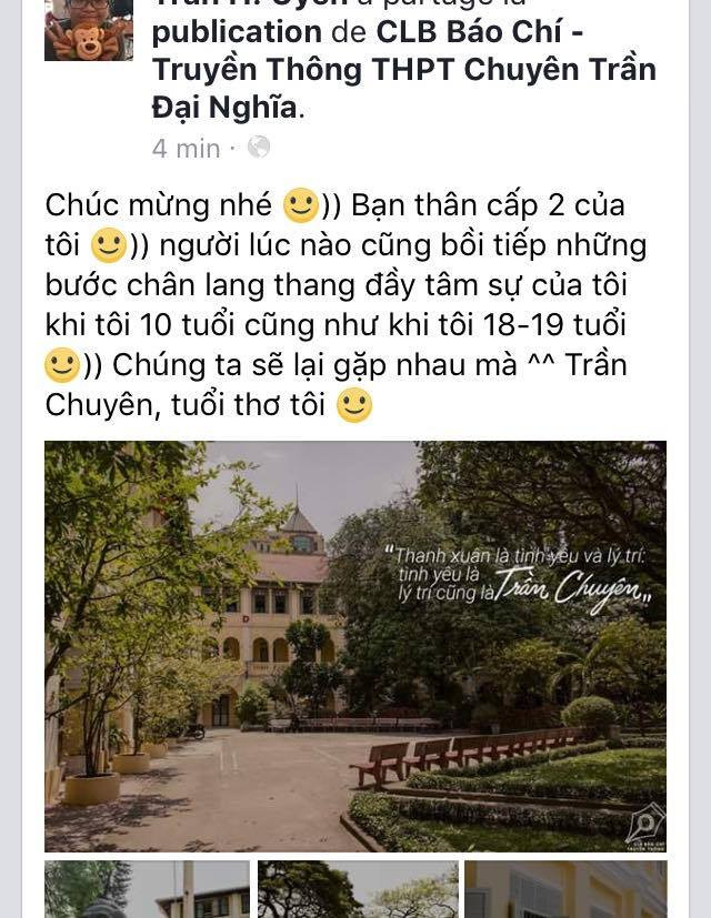 Nhiều cựu học sinh xa rồi nhìn lại thấy bồi hồi lắm. Những anh chị ra trường đã sáu, bảy năm vẫn rất nhớ “người yêu không tuổi” này. Các cựu học sinh “quậy” còn đăng cả caption “Nhớ thầy giám thị quá” nữa chứ! Và ngay cả những bạn còn đang học tại mái trường Trần Đại Nghĩa, khi share bộ ảnh, vẫn có những caption cũng "ngôn tình" không kém.