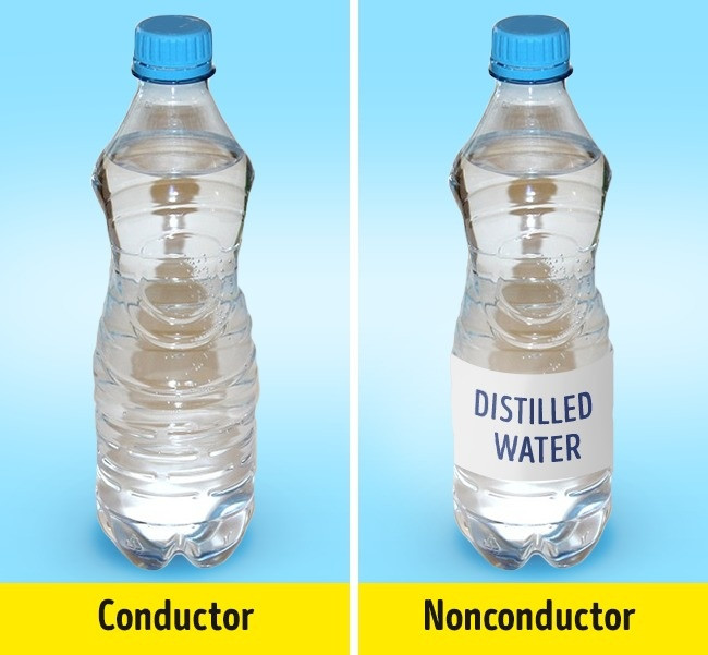 Thực tế là: Nước tinh khiết 100% không hề có khả năng dẫn điện đâu bạn ạ! Tuy nhiên, nước vốn có tính hoà tan, nên thường pha lẫn tạp chất, thường là các muối, tạo ra các ion tự do trong dung dịch nước, cho phép dòng điện chạy qua.
