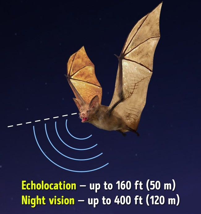 Thực tế là: Đúng là dơi thường dùng sóng âm để định hướng trong không gian, nhưng ban đêm chúng cũng vẫn có thể nhìn được nếu đúng môi trường ánh sáng hợp lý.
