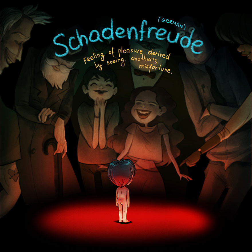 Schadenfreude - cảm giác thỏa mãn, vui sướng khi nhìn thấy sự bất hạnh của người khác bắt nguồn từ tiếng Đức.