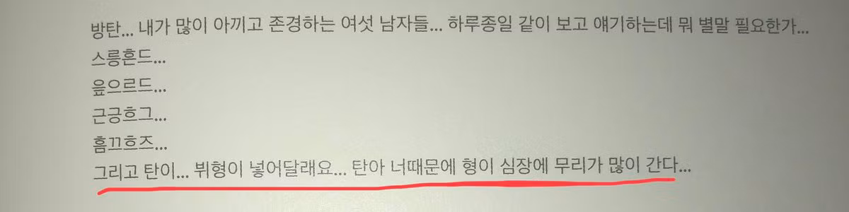 Cuối cùng, Jungkook đã thêm một dòng khiến mọi người bất ngờ. “Và cả Tanni nữa (anh V dặn mình cho thêm vào đó). Tannah à, trái tim anh không ổn chỉ vì em thôi đó”. Tanni chính là chú chó cưng Yeontan của V, nhưng chắc hẳn là Jungkook cũng rất yêu quý chú chó xinh xắn này nên mới nhắc đến.