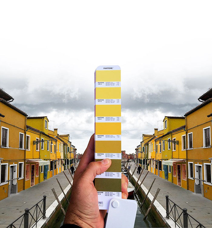 Andrea Antoni, một nhà nhà tạo hình người Ý, đã cố gắng tìm hiểu cách phối màu của các phong cảnh xung quanh mình bằng bộ thanh màu Pantone (tiêu chuẩn so sánh và pha chế màu do một công ty cùng tên sáng chế ra).