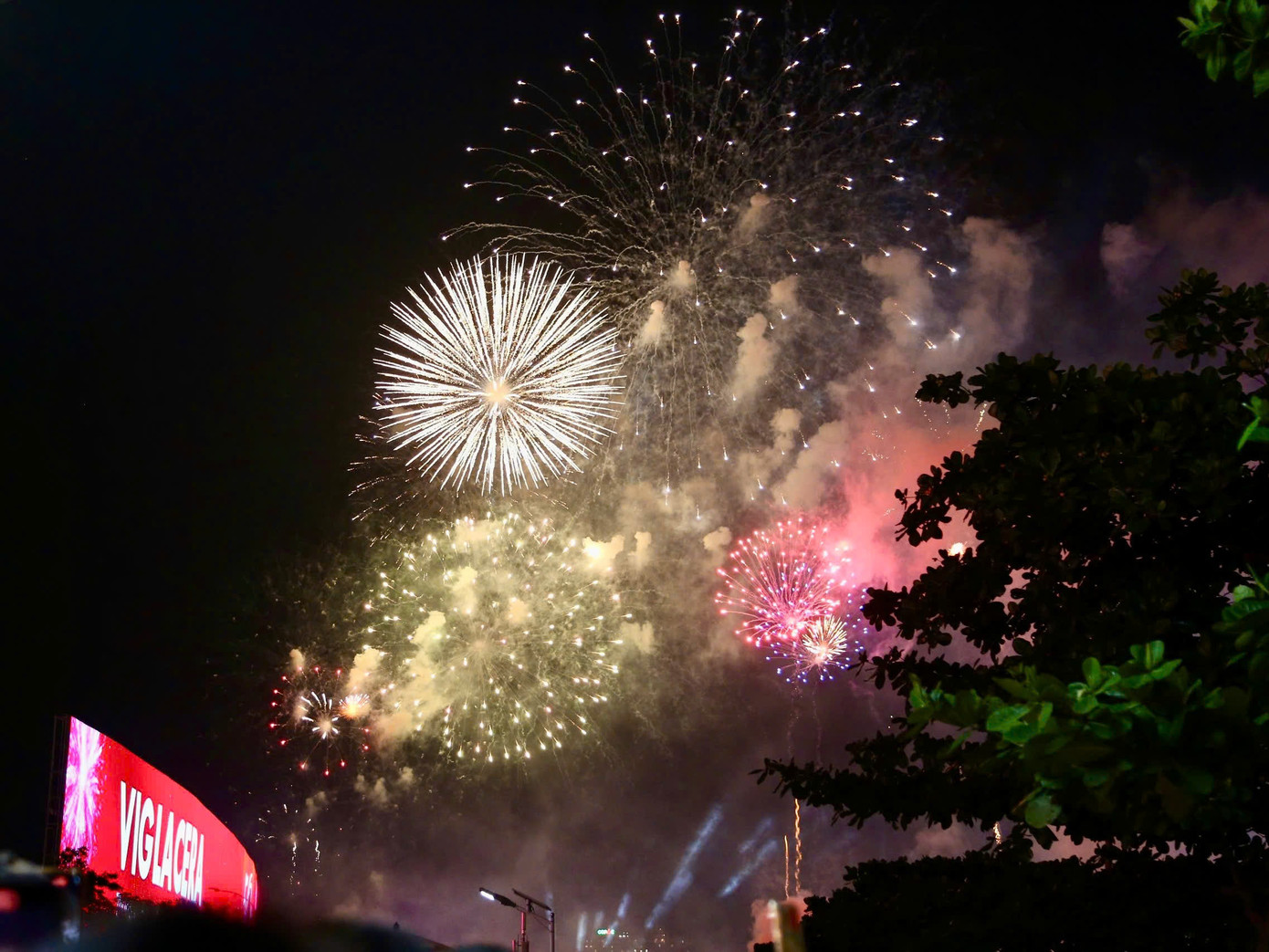 | Pháo hoa rực sáng trên bầu trời Sài Gòn chào mừng 50 năm Ngày Giải phóng miền Nam, thống nhất đất nước. (Ảnh: Quang Vinh) |