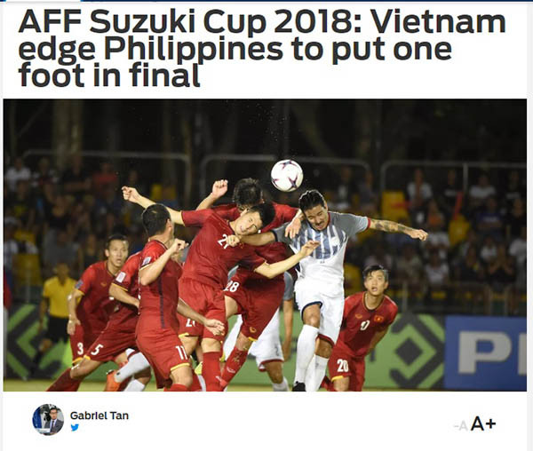 Tờ báo ghi nhận Patrick Reichelt của Philippines là cầu thủ đầu tiên ghi bàn vào lưới Việt Nam. Tuy nhiên, biên tập viên lại dành nhiều lời ca ngợi cho Phan Văn Đức. "Văn Đức vượt qua hàng rào phòng thủ và tạo ra một cú dứt điểm tuyệt vời đưa Việt Nam trở lại dẫn trước trong hiệp hai", kí giả viết.